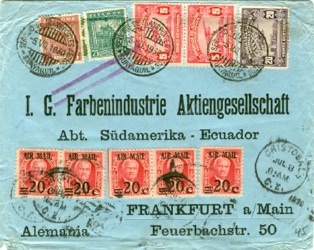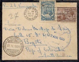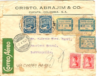 Die PAA und die Scadta beförderten ab 1929 die Postmenge gemeinschaftlich durch Kolumbien nach Süd-, Mittel- und Nordamerika. Die Postsäcke des ankommenden Scadta-Flugzeuges wurden in Cristobal an das PAA-Flugzeug übergeben. Sollte dabei ein Brief z. B. durchgehend nach New York befördert werden, musste dieser auch US-Luftpostmarken besitzen. Letztlich entstanden Dreiländer-Frankaturen mit National-Marken, Scadta-Marken und Luftpostmarken der Canalzone.